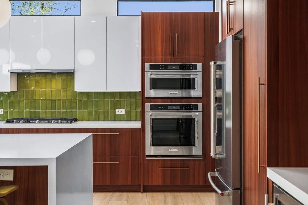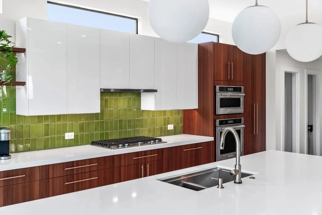 With finishes like the Nordic stain, these cabinets impart a sense of warmth and invitation. Meanwhile, the durable and distinctive Sapele showcased in their collection adds an exotic touch, enhancing the visual appeal of any mid-century modern kitchen.