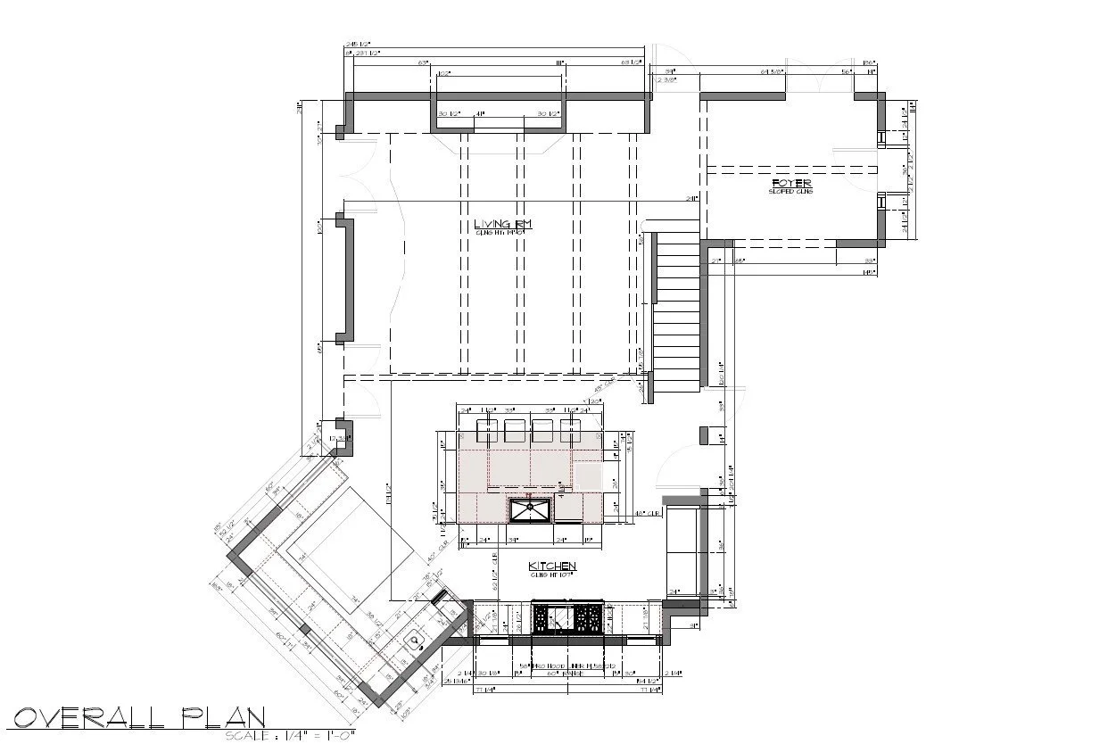We started this design that modified the floor plan slightly but reconfiguring the space. Then we shared the vision of a small addition and how it would changing the cook wall. The client was so blown away by the possible change that they decided the addition was a must have. As you can see below this kitchen is going to make a huge transition to this whole floor.
