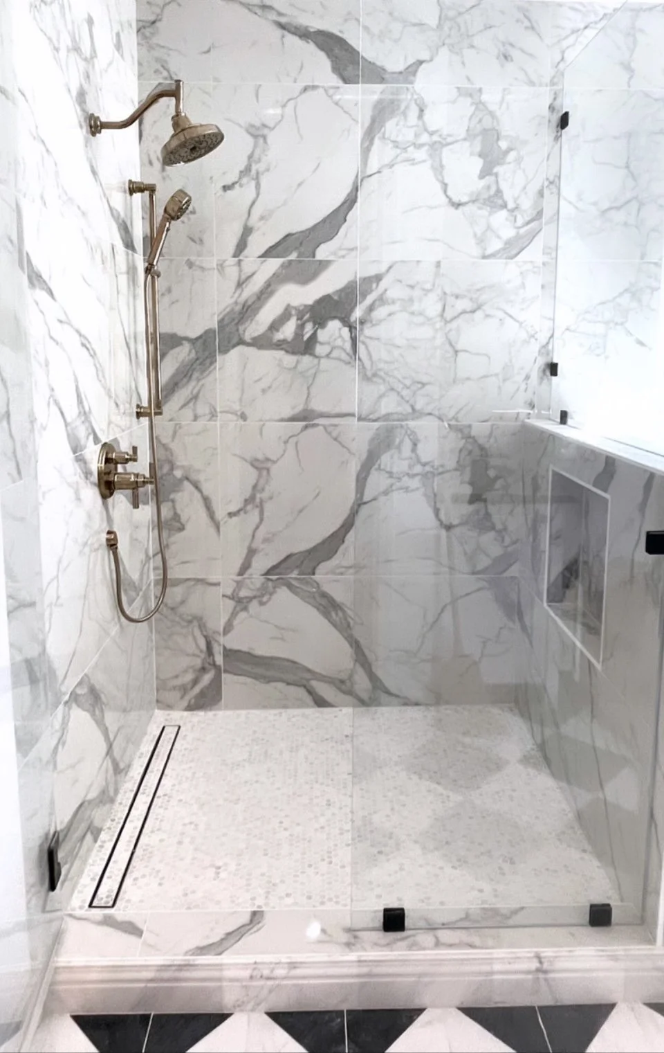 What’s black, white, and chic all over this home remodel is full of high contrast materials and we could be more excited for it all to come alive. We mixed classic materials in black and white mixed with the drama of brass fixtures space where you can indulge the most adventurous decorating ideas